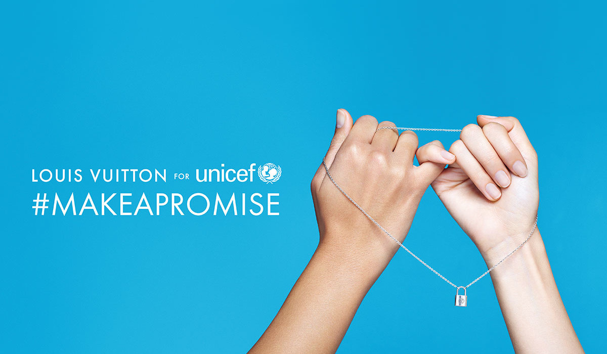 Louis Vuitton es una empresa francesa de marroquinería de lujo, especializada en artículos de viaje y que es considerada una de las marcas de lujo más valiosas del mundo. Su gestión de responsabilidad social ha sido siempre expuesta en la prensa como en 2017, cuando la marca reafirmó su compromiso con Unicef y lanzó una nueva versión de su candado Silver Lockitque, que esta vez adorna una serie de pulseras de colores. Desarrollaron una campaña llamada #MakeAPromise cuyo objetivo era recaudar fondos para niños sirios en situación de emergencia. Los fondos recaudados por la compra de la pulsera serán destinados a UNICEF, con el fin de contribuir a la construcción de suministros de agua potable, servicios sanitarios y nutricionales, ofrecer ayudas económicas a las familias y distribuir mantas y prendas de abrigo para meses de invierno.